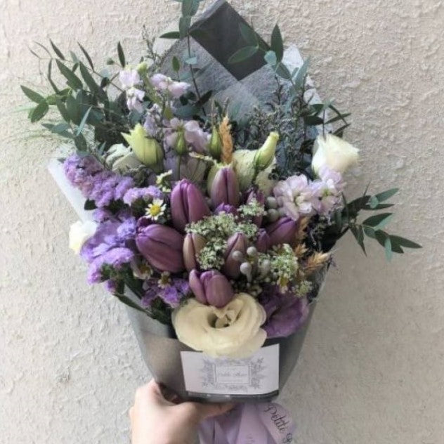 The most classic flowers of all - Tulips. They are known to symbolize perfection and deep love. Presenting a dreamy and sophisticated bouquet of tulips and it's complementing fillers based on your selected colour of choice.